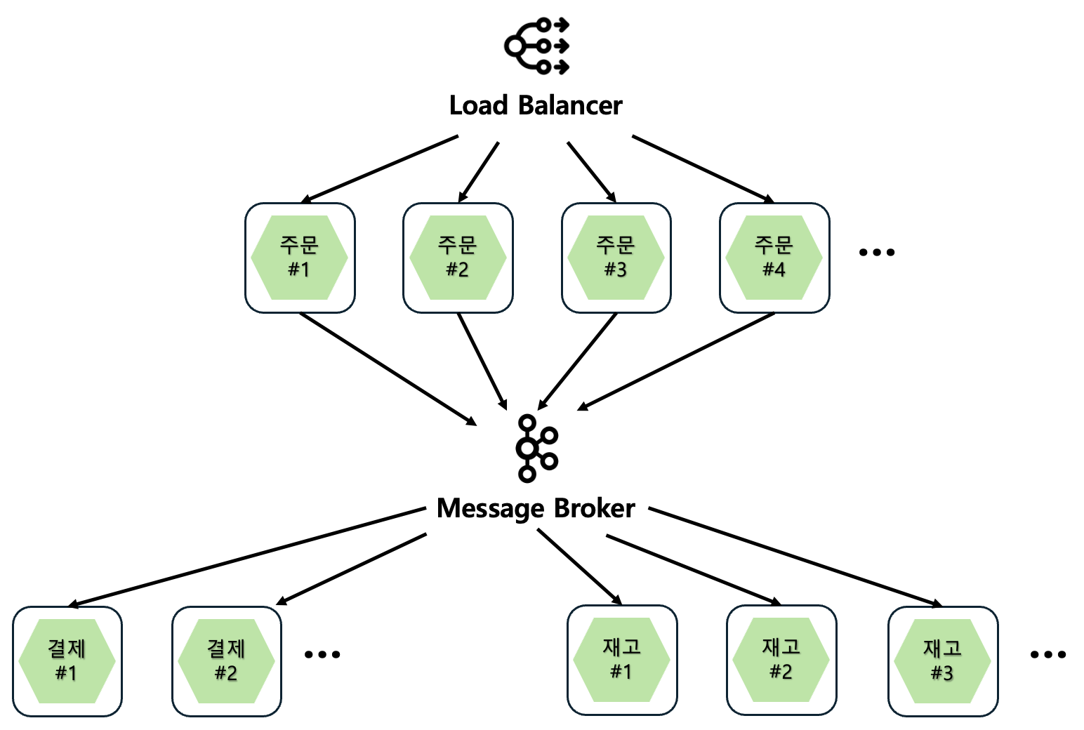 - 이벤트 브로커만 확장하면 대규모 트래픽도 자연스럽게 분산된다.