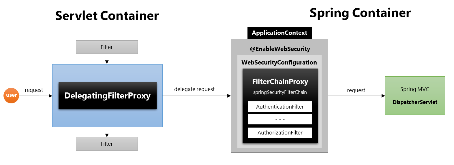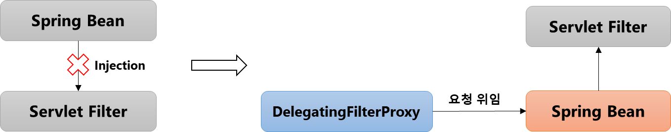 - 이때 DelegatingFilterProxy는 스프링 필터가 아닌 서블릿 필터이다.